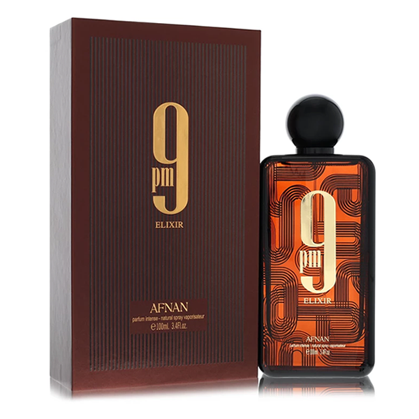 Afnan 9PM Elixir, introduced in 2025, is an Oriental Spicy fragrance designed for both women and men. It opens with a lively burst of cardamom, nutmeg, and elemi, setting a warm and aromatic tone. The heart blends pimento, lavender, and leather, weaving together spice, freshness, and depth. As it settles, rich notes of vanilla, patchouli, labdanum, and rock rose create a sensual, lingering base. The result is a bold yet refined composition that balances heat, elegance, and allure.