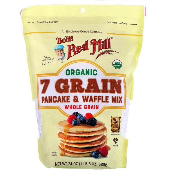 Bob’s Red Mill, Organic 7 Grain Pancake & Waffle Mix, Whole Grain, 24 oz (680 g)