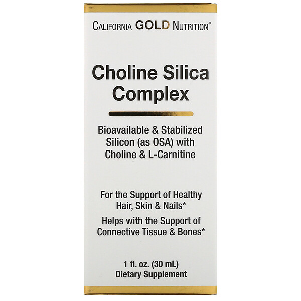 California Gold Nutrition, Choline Silica Complex, Bioavailable & Stabilized Silicon (as OSA) Collagen Support, 1 fl oz (30 ml)