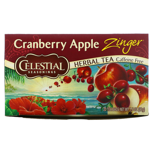 Celestial Seasonings, Herbal Tea, Cranberry Apple Zinger, Caffeine Free, 20 Tea Bags, 1.5 oz (42 g)