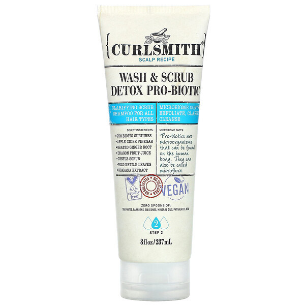 Curlsmith, Wash & Scrub Detox Pro-Biotic Shampoo, All Hair Types, Step 2, 8 fl oz (237 ml)