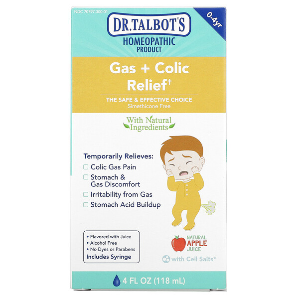 Dr. Talbot’s, Gas + Colic Relief, 0-4 yr, Natural Apple Juice, 4 fl oz (118 ml)
