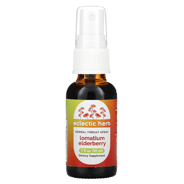 Eclectic Institute, Herbal Throat Spray, Lomatium Elderberry, 1 fl oz (30 ml)