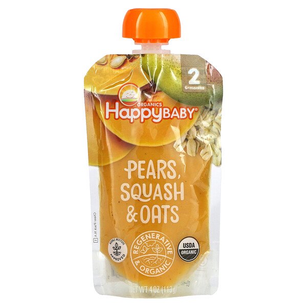 Happy Family Organics, Organic Baby Food, Stage 2, 6+ Months, Pears, Squash & Oats, 4 oz (113 g)