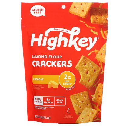 HighKey, Keto Friendly Gluten Free Almond Flour Crackers, Cheddar, 2 oz (56.6 g)