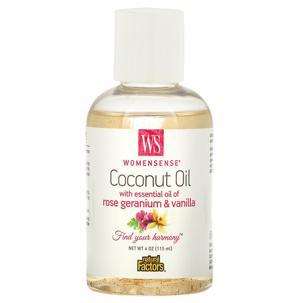 Natural Factors, WomenSense, Coconut Oil with Essential Oil of Rose Geranium & Vanilla, 4 oz (115 ml)