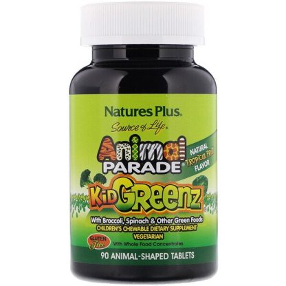NaturesPlus, Source of Life, Animal Parade, Kid Greenz with Broccoli, Spinach, Natural Tropical Fruit Flavor, 90 Animal-Shaped Tablets