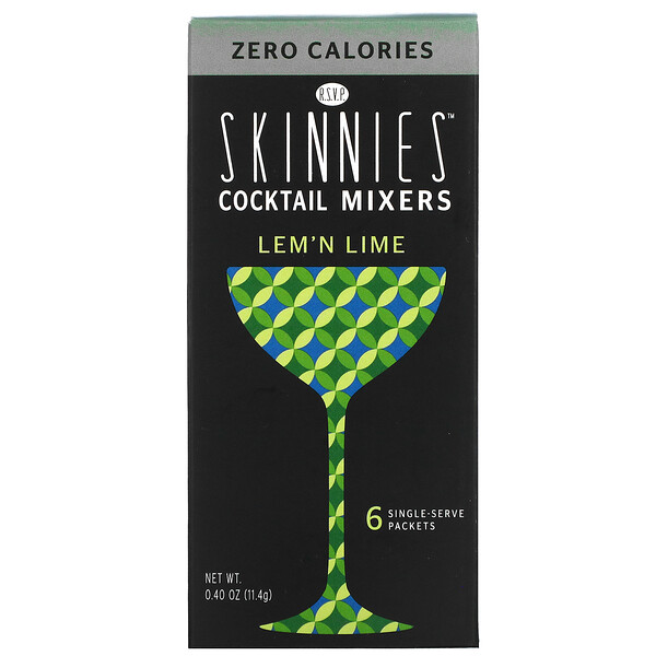 RSVP Skinnies, Cocktail Mixers, Lem’ N Lime, Zero Calories, 6 Single Serve Packets, 0.40 oz (11.4 g) Each