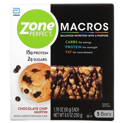 ZonePerfect, MACROS Bars, Chocolate Chip Muffin, 5 Bars, 1.76 oz (50 g) Each